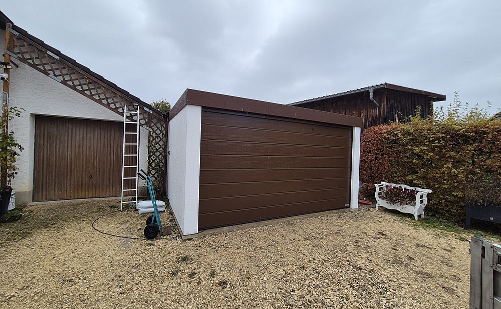 Eine alte Doppelgarage mit 2 Schwingtoren musste der neuen Generation weichen. Der Kunde freut sich nun über modernste Antriebstechnik und längere Lebenszeit seiner Garage.